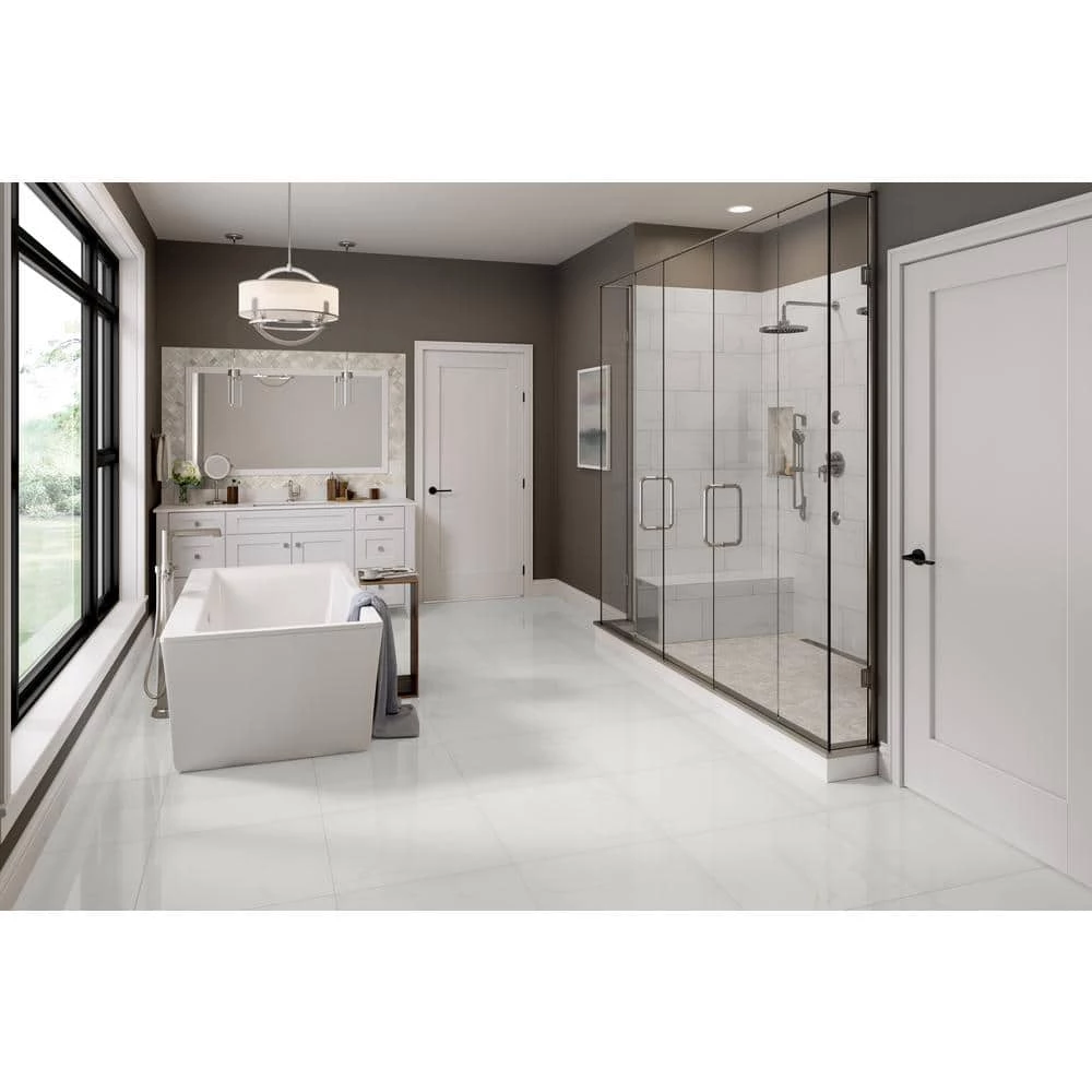 Simply classic yet striking Contessa adds a timeless value to any space. Inspired by the exquisite veining of marble, the glazed porcelain tile comes in matte or glossy and brings a level of elegance to kitchens, bathrooms, living rooms, dining rooms and fireplace façades. The 5 sizes and 2 colors, in combination with the unique veining, offer numerous design options. Pair Contessa with a matching mosaic tile and the overall classic, white look is a perfect backdrop within any home.