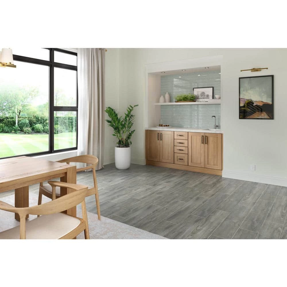MokuzaiII captures an antique wood-look in a durable and easy-to-clean porcelain floor and wall tile. Vivid detail is used to achieve the appealing look of wood without having all the upkeep. The 8 in. x 35 in. large format plank provides an authentic look of hardwood and brings a natural feel to unexpected places such as fireplace facades, kitchen counters, stove areas, and bathrooms. Available in 5 sophisticated colors, Mokuzai II is a beautiful option for achieving a modern wood-look for your home or space.