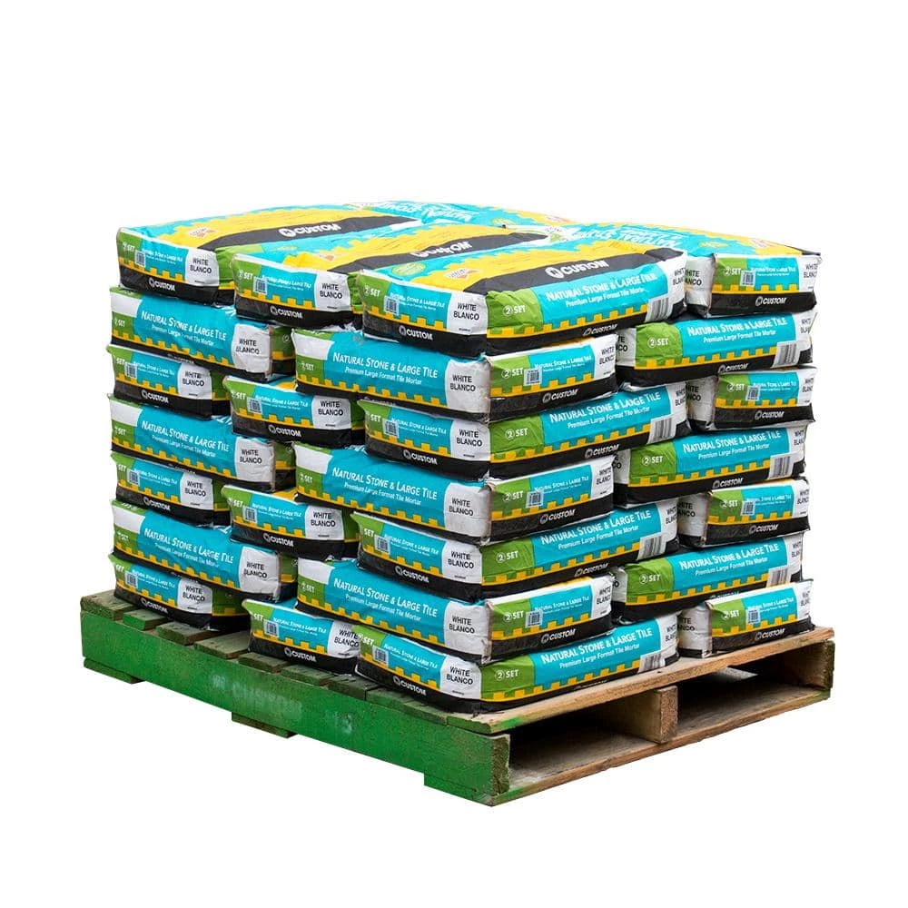 Custom Building Products Natural Stone and Large Tile Premium Mortar is a premium quality, polymer-modified mortar for any size natural stone or large format ceramic or porcelain tile 15 in. (38 cm) or larger on one or more sides. This mortar can also be used to install clay pavers or for medium bed applications. With a non-slumping formula that reduces the chance for lippage and promotes level tile installations, the mortar can be applied for horizontal applications as thick as 3/4 in. (19 mm) or for thin bed applications to 1/4 in. (6 mm).