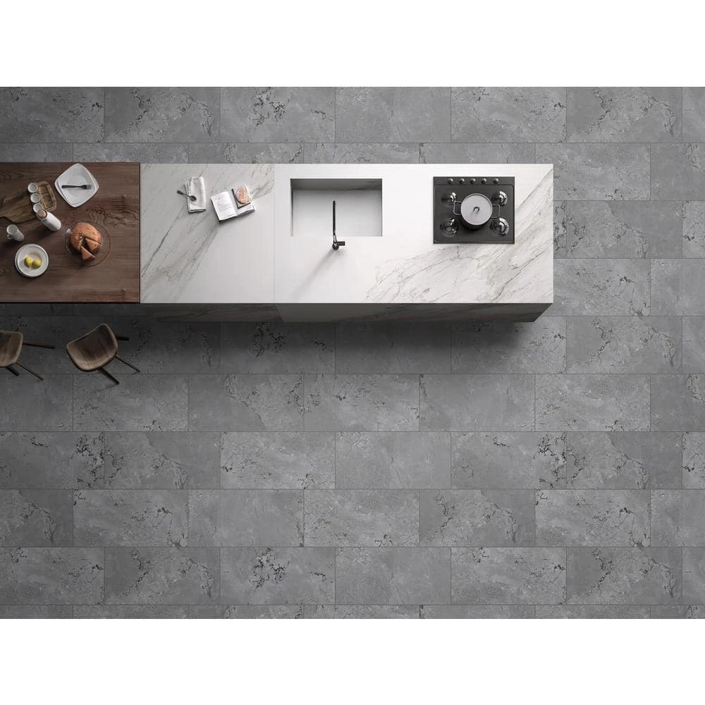 Newport artfully blends the look of marble and concrete, giving a modern twist to a classic marble look. Cool undertones in the 4 color options highlight the trending industrial look. Deep veining offers interest and dimension to this stunning floor and wall tile. Coming in shades ranging from soft white to deep charcoal gray, and available in the traditional 12 in. x 24 in. glazed porcelain tile size. Available in matte or lappato finish with a matching mosaic. Newport is ideal for floors and walls in kitchens, bathrooms, great rooms, fireplace surrounds and adds stunning beauty indoor and outdoor for both commercial and residential settings.