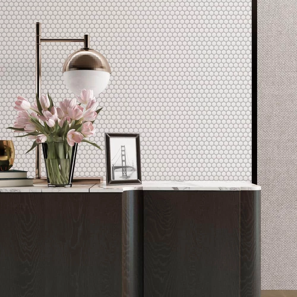 Give any room a patterned, finished look with the classic simplicity of ReZone. The clean lines of this all white mosaic add a sense of calm and order in a range of applications. It has a upscale look.