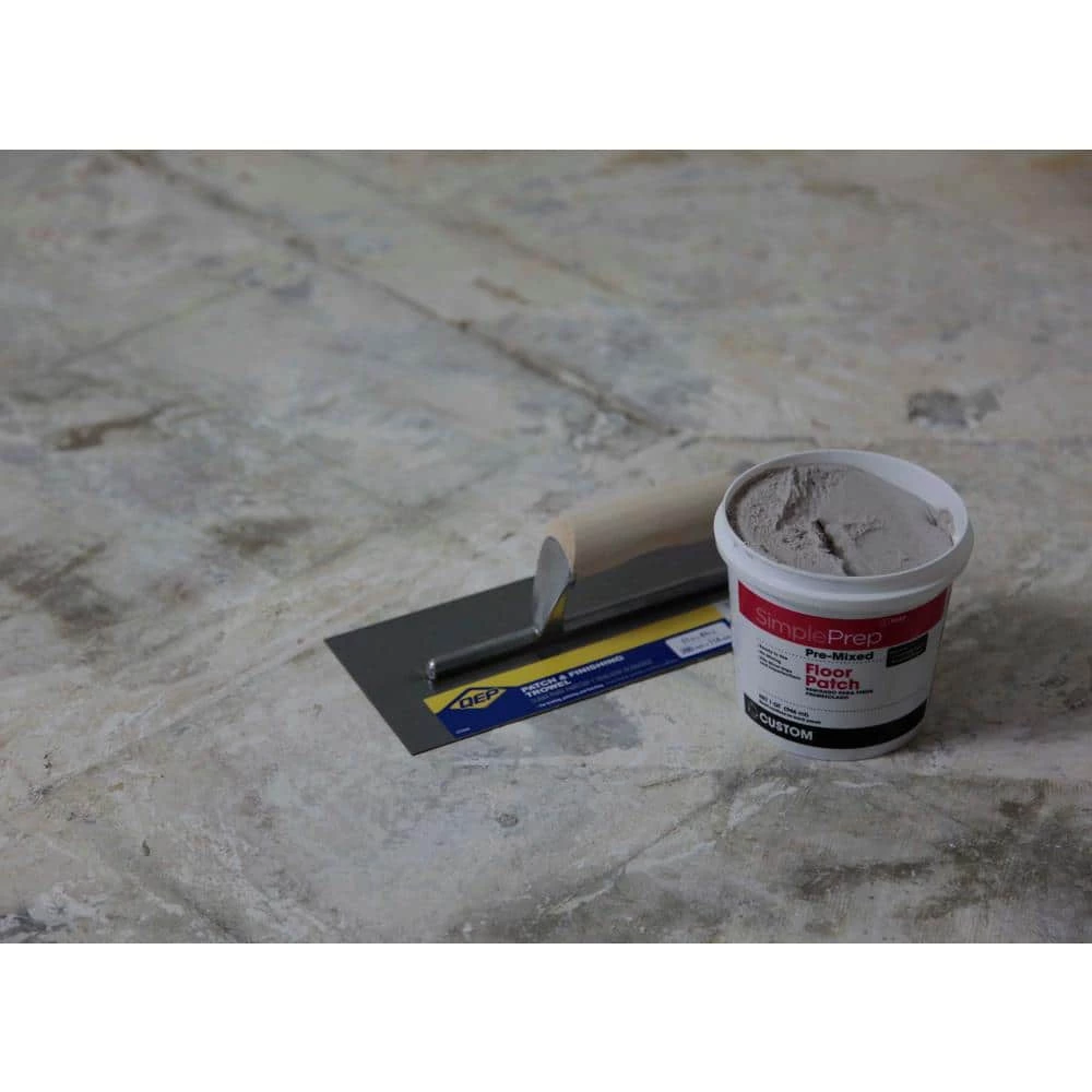 Pre-Mixed Floor Patch helps repair cracks and holes in concrete, vinyl and plywood floors before installing tile or other flooring. The Floor Patch helps fill minor dips and imperfections. For interior use only.