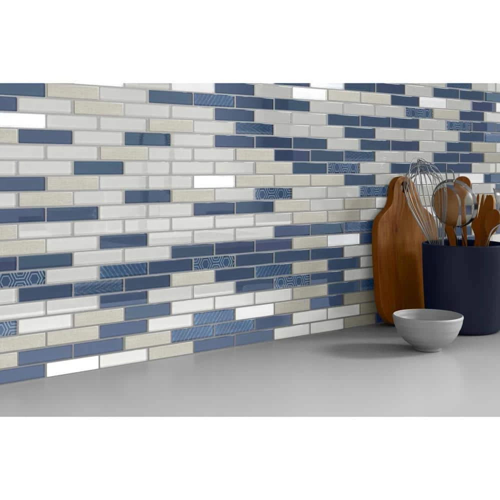 Volare highlights subtle geometric-inspired accents within a small-scale linear mosaic. Glass invites a myriad of texture variations to each color within the series. Volare is a great backsplash option and may be installed on shower walls.